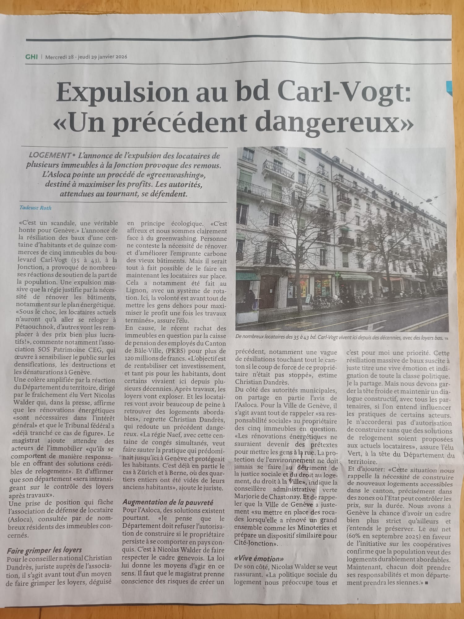 Tribune de Genève, 21 janvier 2026