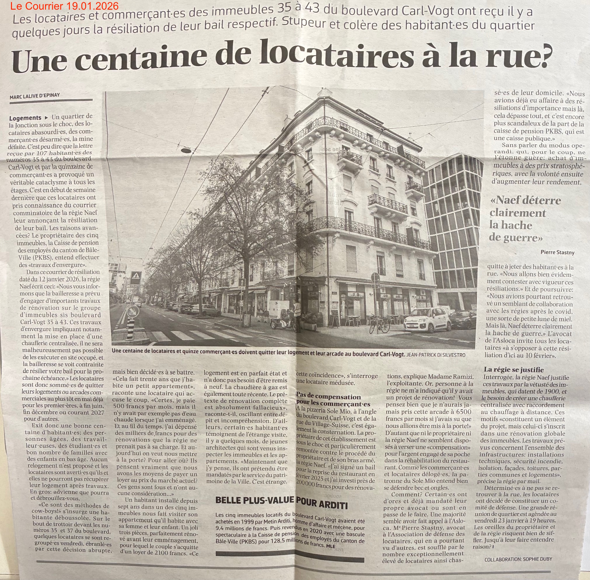 Les locataires et commerçants des immeubles 35-43 Boulevard Carl-Vogt ont reçu une lettre de congé.